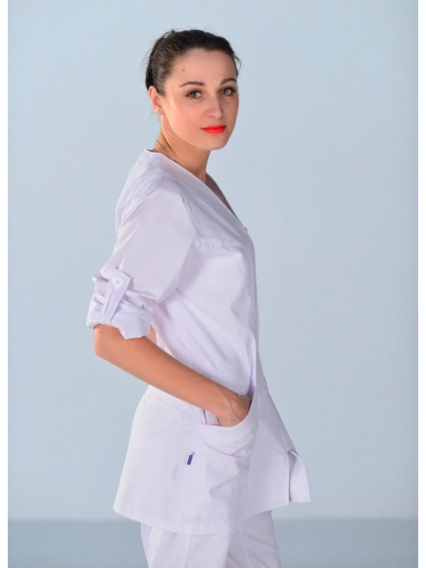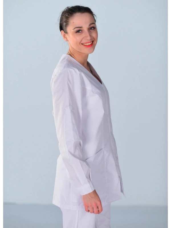La tunique médicale blanche est la tenue idéale pour les femmes qui exercent une fonction dans le secteur médical. La coupe légèrement ample de cette tunique médicale femme la rend pratique et facilite les mouvements de la personne qui la porte dans l’exercice de sa fonction.