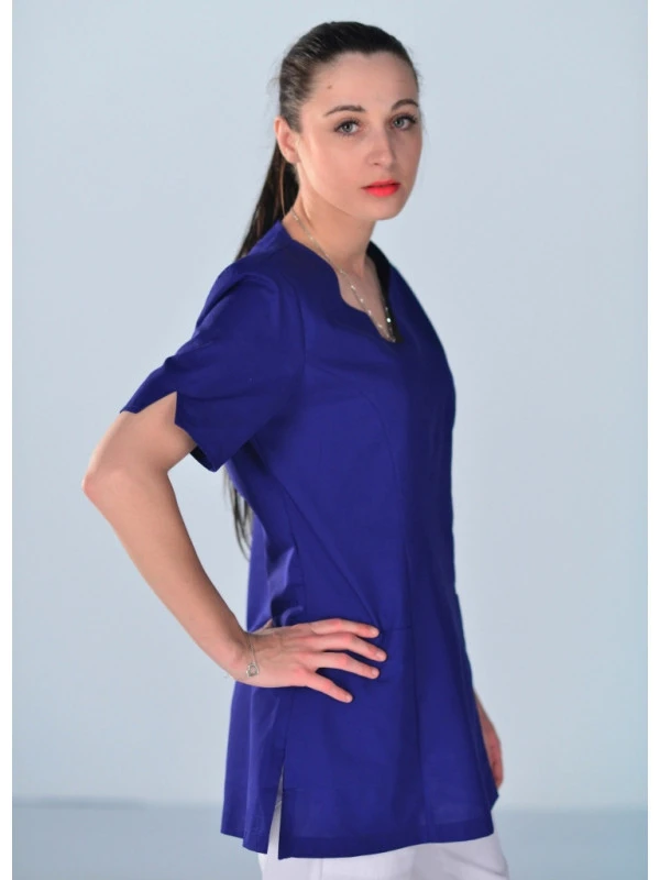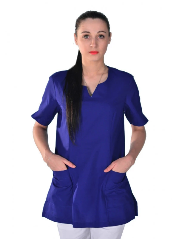 La tunique bleue médicale Alice est un vêtement de travail très confortable. Elle a un design aérée et pratique. La tunique nous fait oublier qu’elle est pour une utilisation en milieu professionnel. Elle pourra vous faire penser à une tunique d’été que l’on porterait pour faire une promenade en bord de mer, pour admirer un coucher de soleil… . La couleur bleue est douce et admirablement discrète.