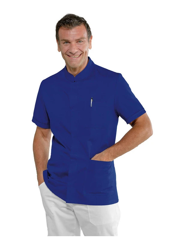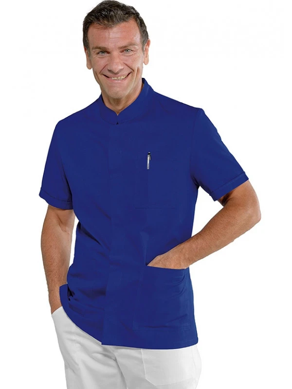 Sa coupe mixte, ses manches courtes ainsi que son col Officier font de cette tenue une blouse médicale moderne.