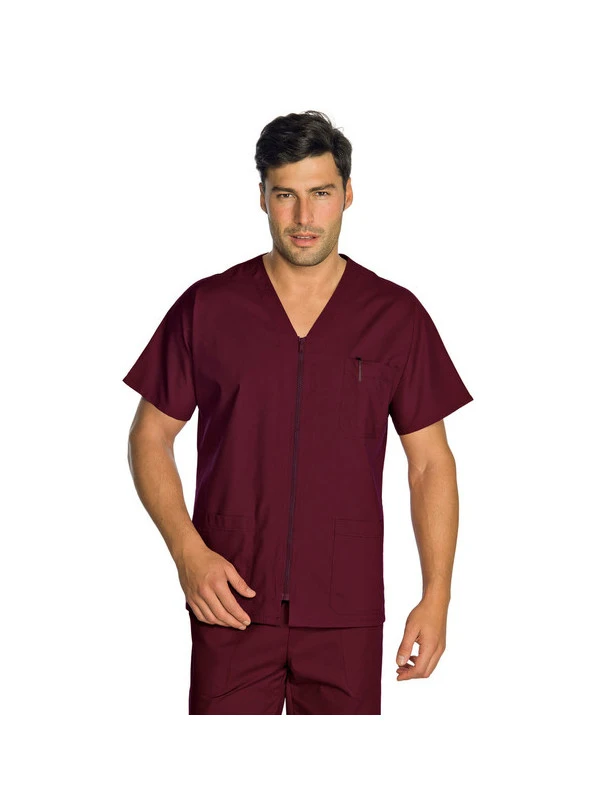 Blouse médicale Unisexe à Fermeture éclair Couleur Bordeaux ultra pratique pour femme