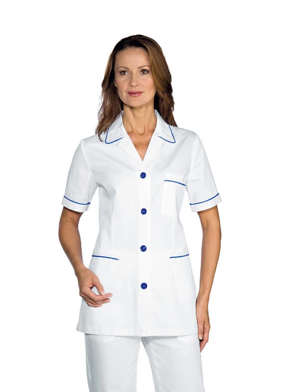 Tunique Médicale Manches Courtes Ginevra Blanc Bleu Cyan 100% Coton