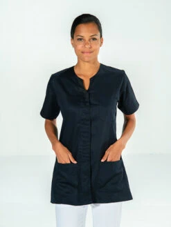 Sa découpe féminine et pratique lui permet de se porter aisément comme tunique en milieux médical, pour médecin, infirmière, aide-soignante, mais aussi comme tunique pharmacienne, ou comme tunique de kinésithérapeute, etc…