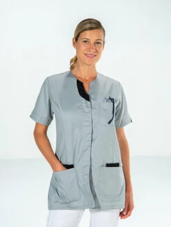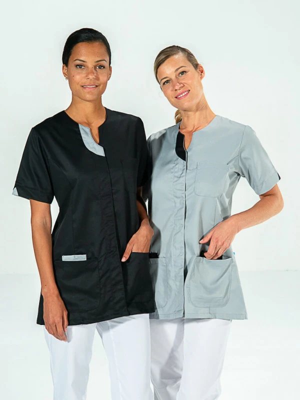 Sa découpe féminine et pratique lui permet de se porter aisément comme tunique en milieux médical, pour médecin, infirmière, aide-soignante, mais aussi comme tunique pharmacienne, ou comme tunique de kinésithérapeute, etc…