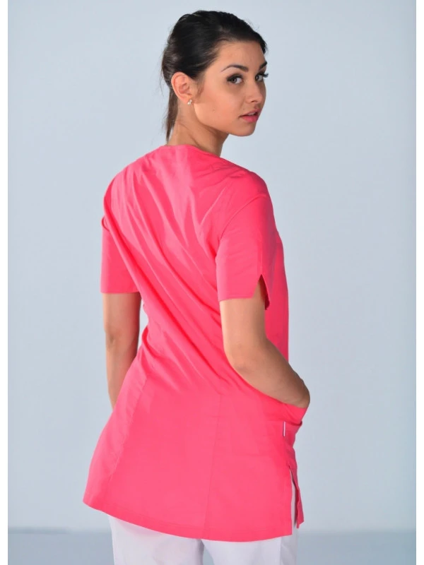 La tenue de travail compte énormément dans le milieu professionnel, notamment dans le secteur médical. Le port d’une blouse est requis et fort indispensable. Cette tunique médicale rose à manches courtes présentant des fentes est la tenue parfaite pour les celles qui évoluent dans le milieu médical comme les vétérinaires, les infirmières, les kinésithérapeutes et les dentistes.