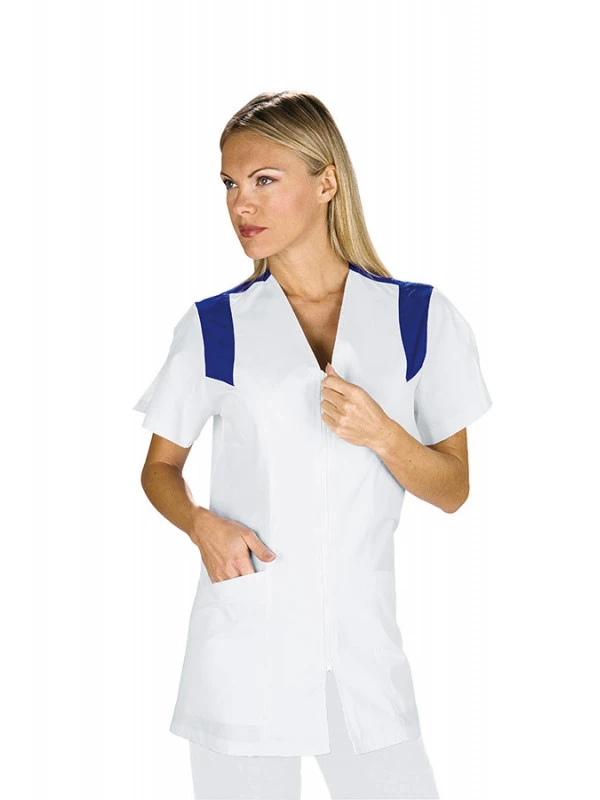 Tunique Médicale Santorini Manches Courtes Blanc Bleu Cyan