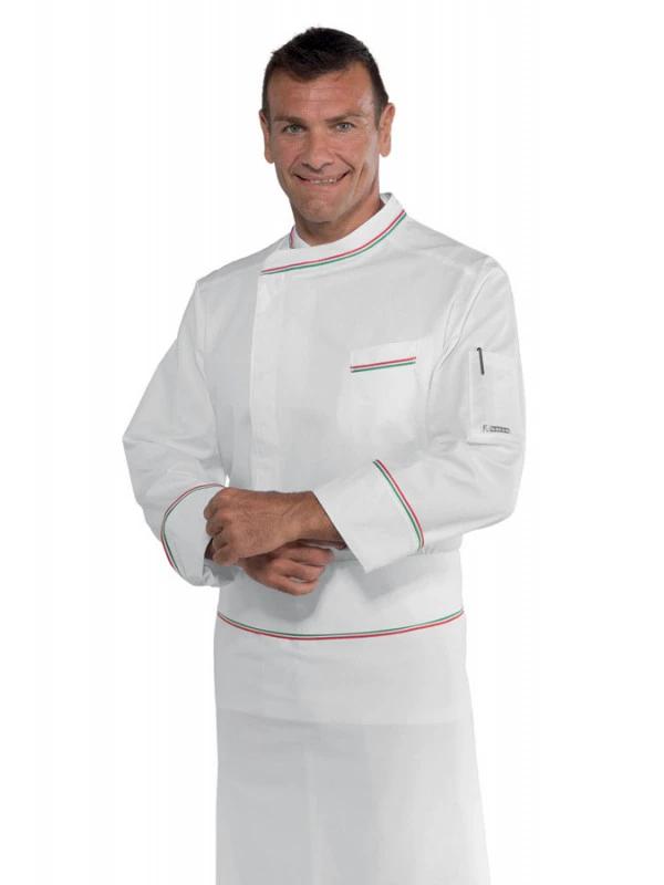Cette veste de cuisine manches longues 100% coton est pratique grâce ses 2 poches. Facile d?entretien et résistantes à de nombreux lavages. Idéal pour les pizzaiolos, ou restaurateur italien