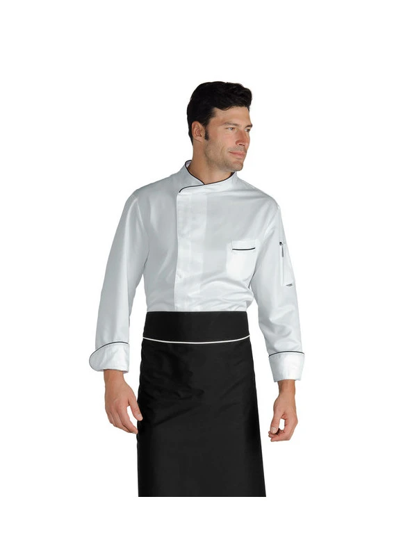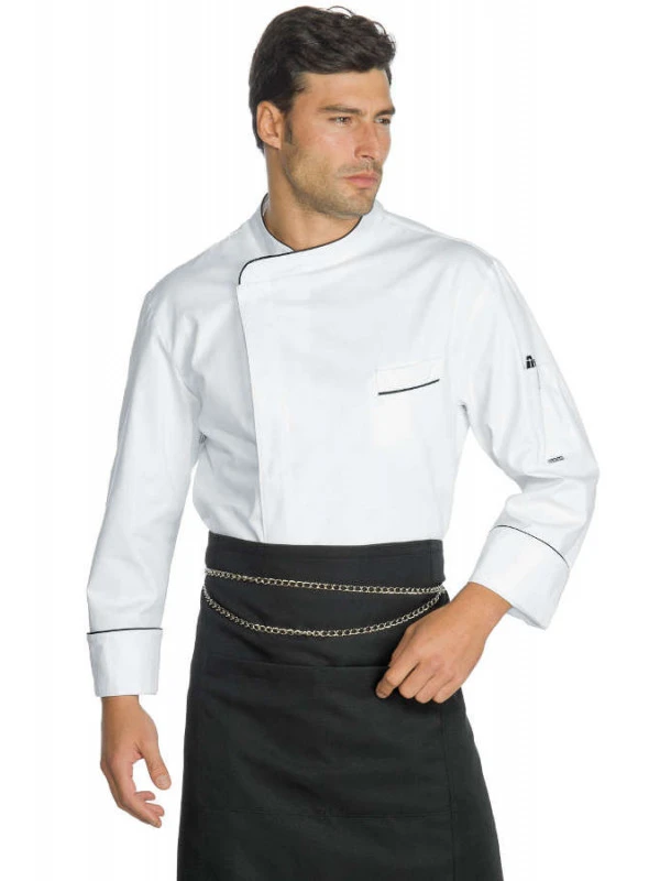 Cette veste de cuisine en microfibres est l’un des Bestsellers de nos vêtements de cuisine, ce modèle avec une finition d’un liseré noir et aux manches longues, avec une fermeture à boutons pression sur le coté. Cette veste de cuisine traversera le temps et les lavages grâce à la qualité de sa fibre. Cette veste de cuisinier conviendra aussi bien à des chefs de cuisine, des commis de cuisine, ou des apprentis cuisinier et pour tout ceux qui passeront par l’apprentissage d’un CAP de cuisine