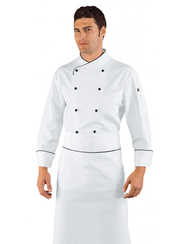 Veste Chef Cuisinier Pechino Blanc Liseré Noir 100% Coton