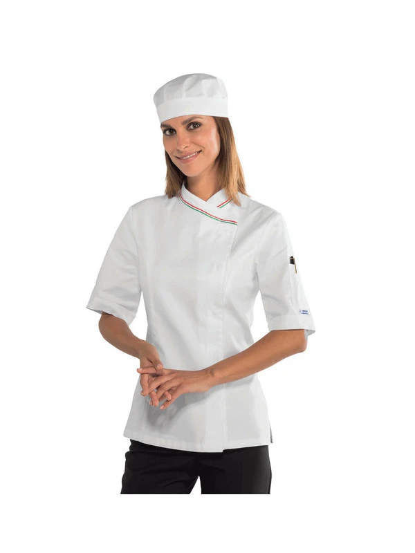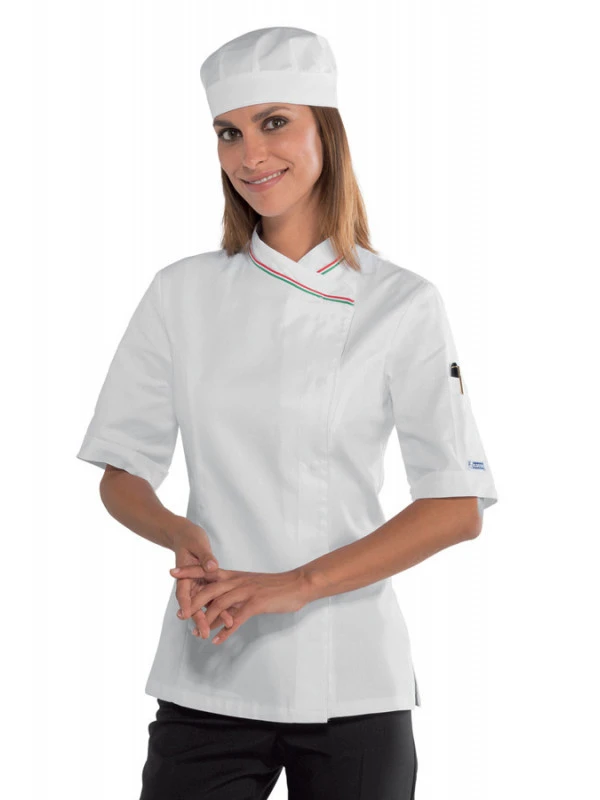 Veste cuisine italienne, manches courtes pour femme, 100% coton.