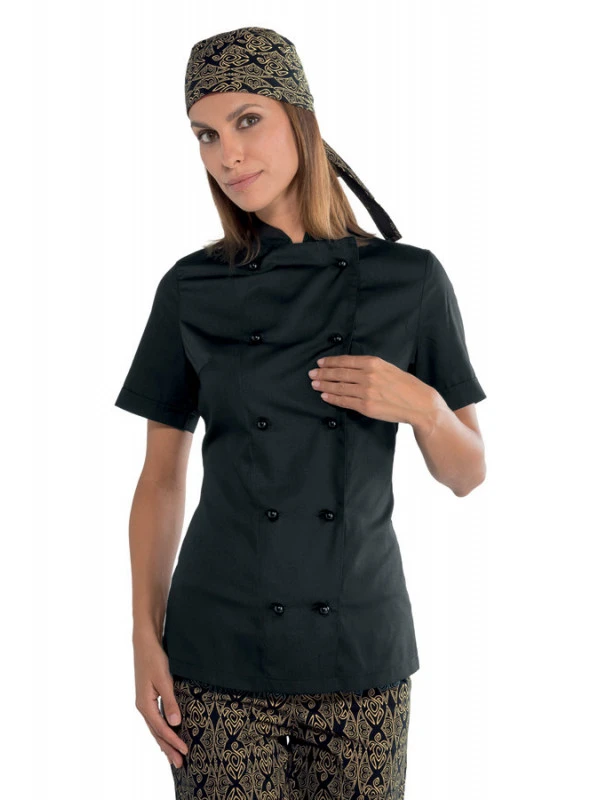 Veste de cuisine pour Femme à manches courtes trés légere. Fini la transpiration en fin de service avec cette veste de cuisine manches courtes ultra légère qui vous procurera une sensation de fraîcheur grâce à sa matière EXTRA LIGHT. Très facile d’entretien avec son repassage facile, la veste de cuisine Femme à manches courtes reste pratique et offre une grande liberté de mouvement tout en restant élégante.