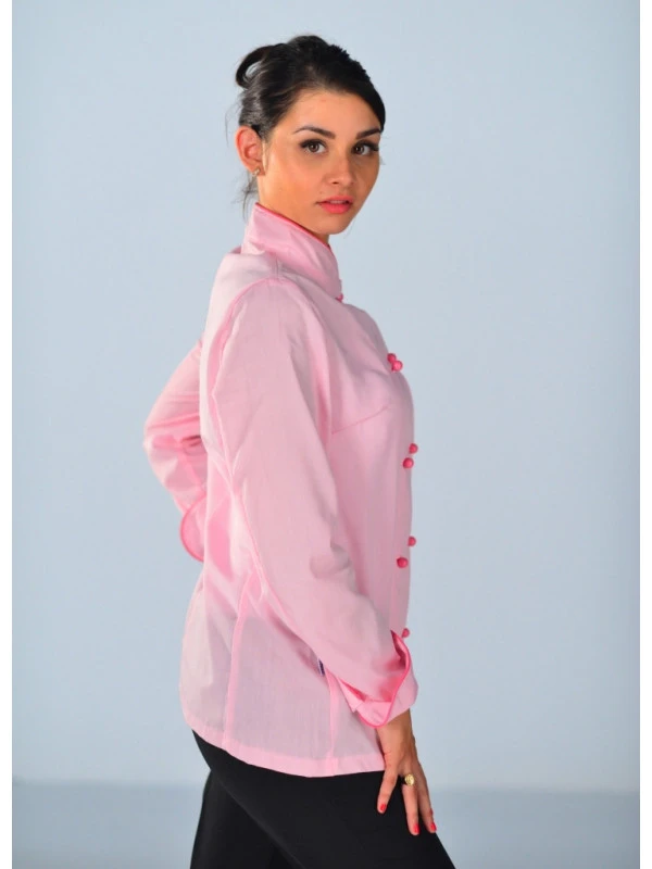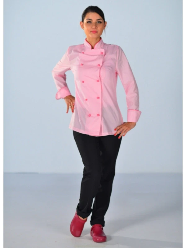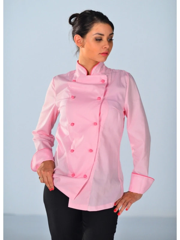 Agréable à porter cette veste de cuisine femme rose sera votre tenue de cuisine parfaite