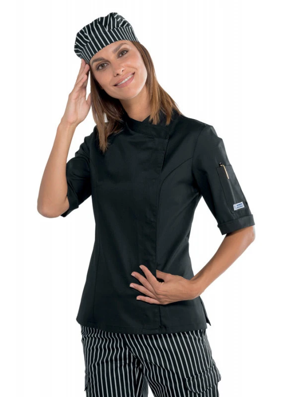Veste de cuisine noire pour Femme à manches courtes