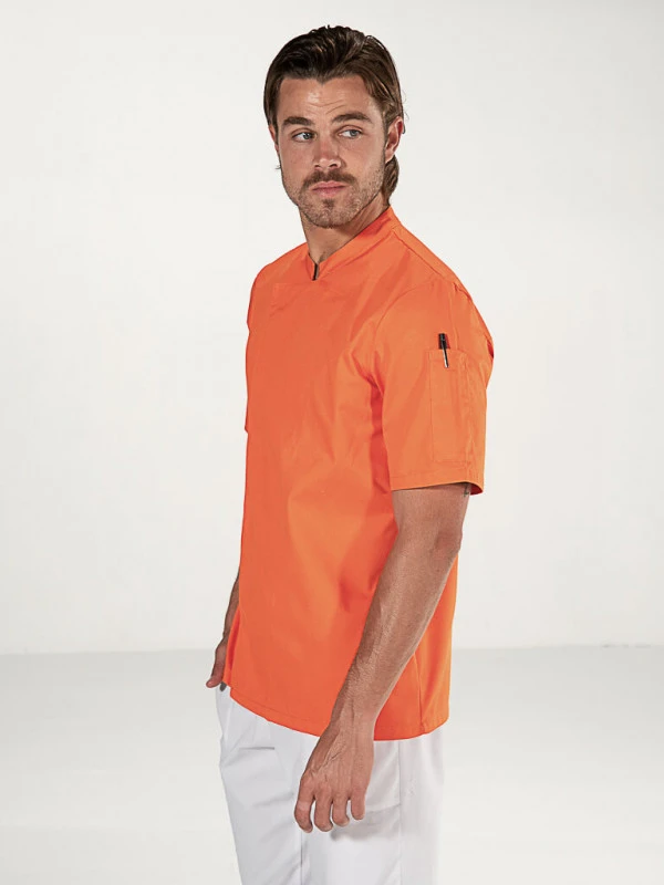 Découvrez cette veste de cuisine orange manches courtes homme ou femme