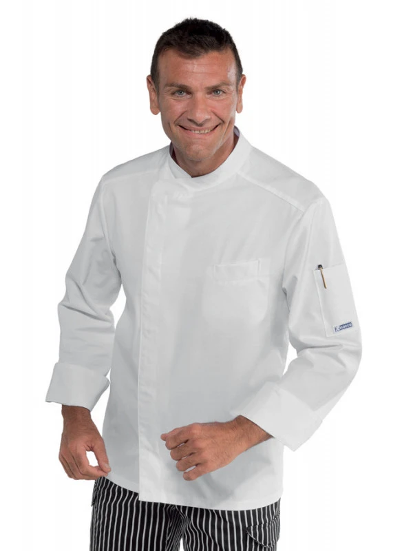 Veste de cuisine manches longues 100% coton. Cette veste de cuisine manches longues 100% coton est pratique grâce ses 2 poches. Facile d?entretien et résistantes à de nombreux lavages. Idéal pour cuisiniers, bouchers, pâtissiers, boulangers.