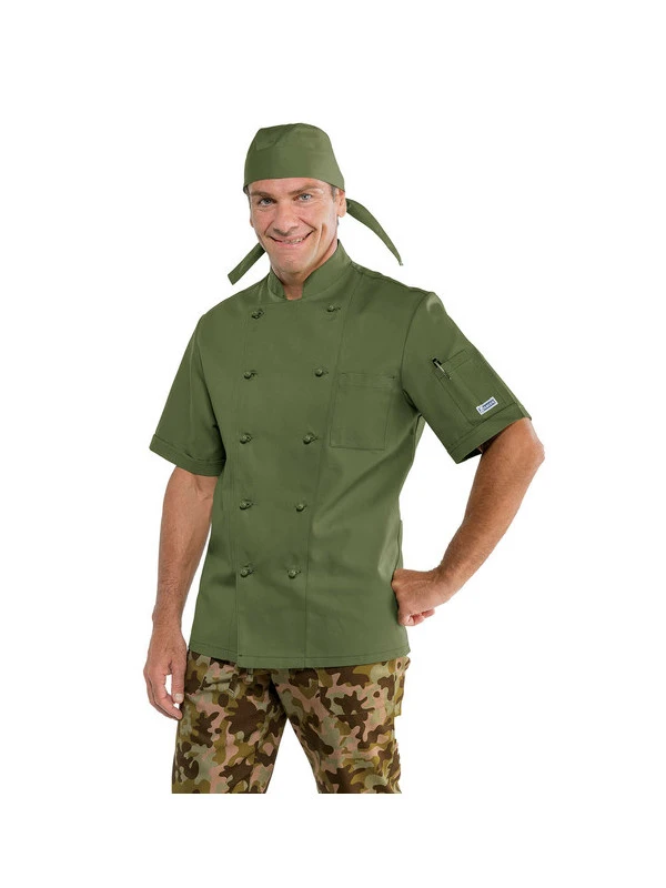 Pour bien dresser son plat, un bon cuisinier doit être bien à l?aise dans son mouvement. Dotée d?une manche courte, cette veste donnera une grande liberté pour vos bras. Conçu à partir de deux matières de qualité, 65 % polyesther, 35 % coton, cette veste coloris vert militaire fait également preuve d?une grande résistance contre les éventuelles tâches. Mais aussi, son avantage d?être une veste de cuisine poche stylo vous permet de faciliter la tâche lorsque vous avez besoin de prendre des notes lors de la réalisation de votre métier.