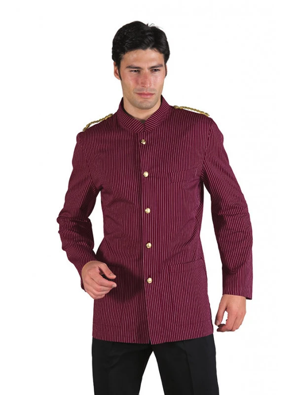 Veste Major d’ Homme Rayé Bordeaux Epaulettes Tressées 100% Coton